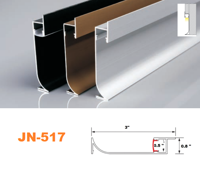 The 517 Aluminum Channel System has a professional finish and a contemporary aesthetic that may be used for a variety of LED strip lighting projects. The milky white channel cover diffuses the harsh brightness of the LED lights, while the aluminum channel homes and protects your LED strips from dust and physical touch. The cover lessens the spottiness of LED strip lights, resulting in a more uniform light. Because LED strip lights’ adhesive backing only allows for one installation before losing its stickiness, encasing them in aluminum tubes makes them instantly movable. You’ll never have to waste another LED strip light to find that exact area to illuminate.