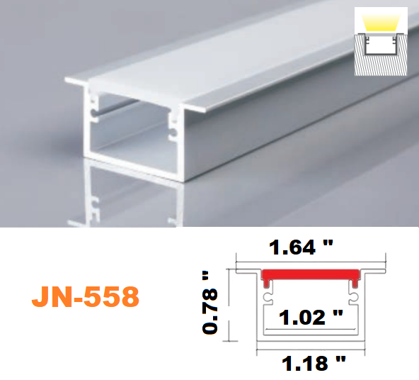 The 558 Aluminum Channel System has a professional finish and a contemporary aesthetic that may be used for a variety of LED strip lighting projects. The milky white channel cover diffuses the harsh brightness of the LED lights, while the aluminum channel homes and protects your LED strips from dust and physical touch. The cover lessens the spottiness of LED strip lights, resulting in a more uniform light. Because LED strip lights’ adhesive backing only allows for one installation before losing its stickiness, encasing them in aluminum tubes makes them instantly movable. You’ll never have to waste another LED strip light to find that exact area to illuminate.