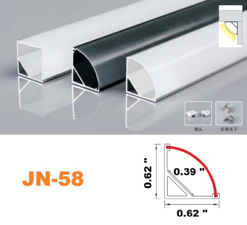 The 58 Aluminum Channel System has a professional finish and a contemporary aesthetic that may be used for a variety of LED strip lighting projects. The milky white channel cover diffuses the harsh brightness of the LED lights, while the aluminum channel homes and protects your LED strips from dust and physical touch. The cover lessens the spottiness of LED strip lights, resulting in a more uniform light. Because LED strip lights’ adhesive backing only allows for one installation before losing its stickiness, encasing them in aluminum tubes makes them instantly movable. You’ll never have to waste another LED strip light to find that exact area to illuminate.