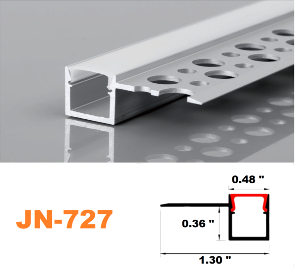 The 727 Aluminum Channel System has a professional finish and a contemporary aesthetic that may be used for a variety of LED strip lighting projects. The milky white channel cover diffuses the harsh brightness of the LED lights, while the aluminum channel homes and protects your LED strips from dust and physical touch. The cover lessens the spottiness of LED strip lights, resulting in a more uniform light. Because LED strip lights’ adhesive backing only allows for one installation before losing its stickiness, encasing them in aluminum tubes makes them instantly movable. You’ll never have to waste another LED strip light to find that exact area to illuminate.